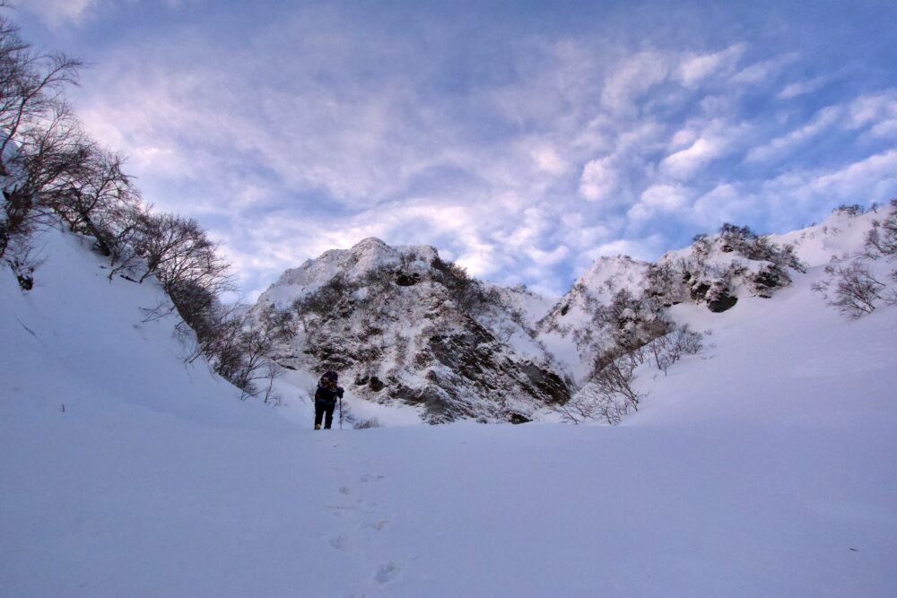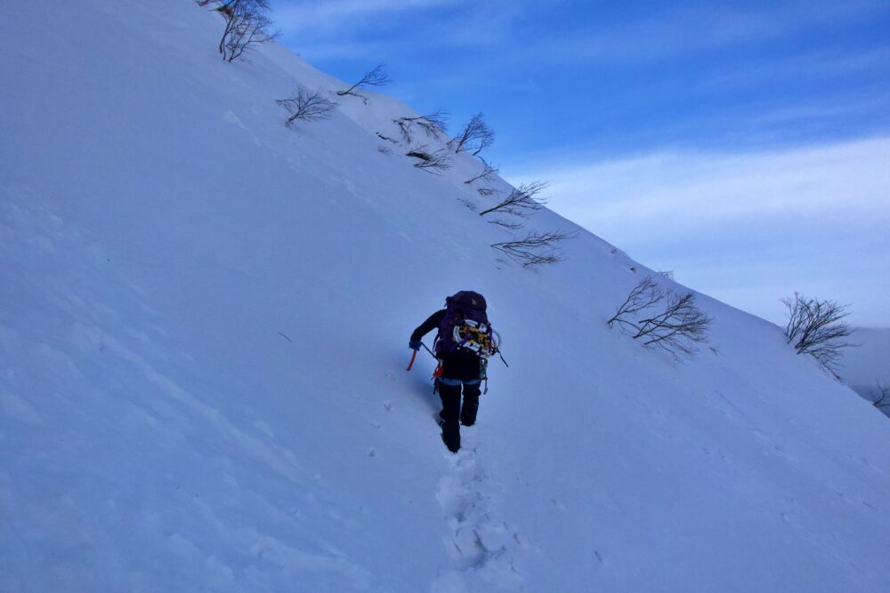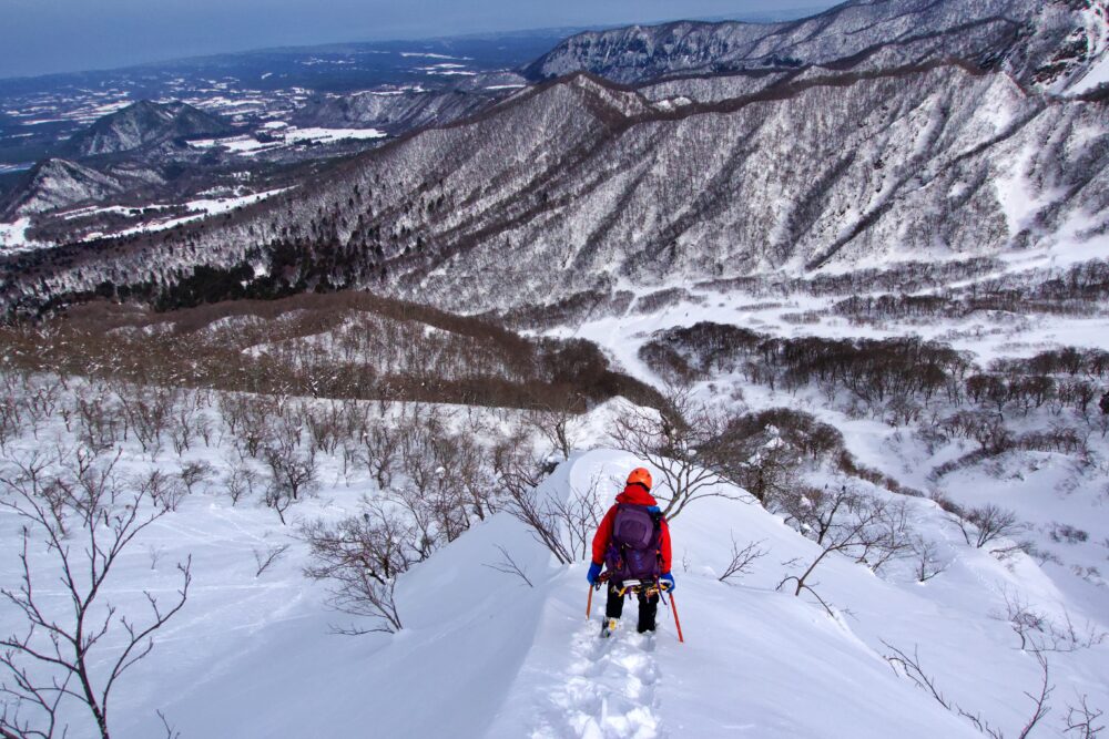 急峻な尾根などはありませんが、逆に降雪直後などは雪崩に警戒が必要です。