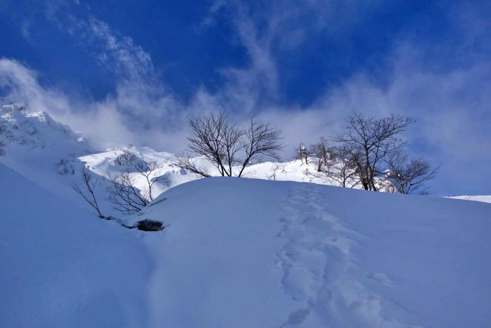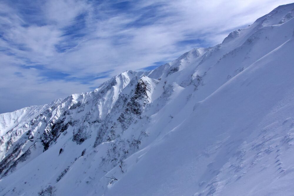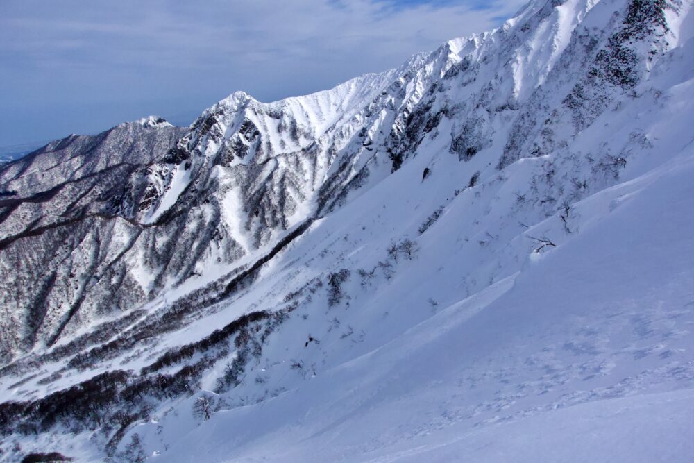 しかし、れっきとしたバリエーションルートですので、基本的はルートファインディングと、雪崩地形の理解、ホワイトアウト時の対象など、リスクへの基本的な対象が出来ることが大前提となります。