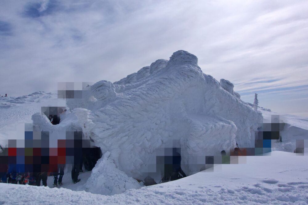 とは言え、これは晴天の週末だからこその光景であり、大山の晴天率は北アルプスよりも低く、基本は荒れた天気が多いです。6合目を超えて8合目以降は開けた地形になる為、ホワイトアウトによる道迷いには十分に注意が必要です。