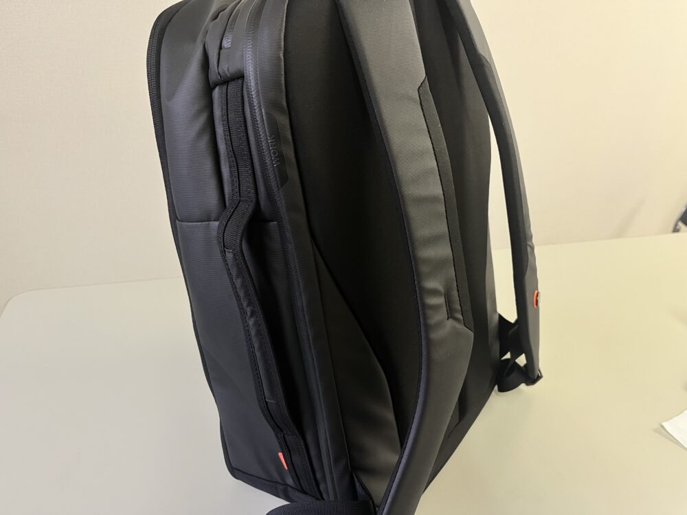 背面は面一の為、空気の抜ける箇所はない為、夏場の汗が少し気になる所ですが、同社の「セオン3-ウェイ20」を夏場も使用していた経験から想像すると問題はないでしょう。